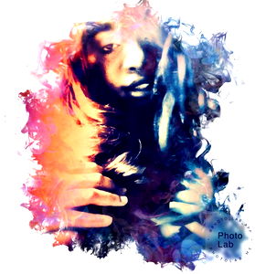Stylized portrait of Angel Vixen, a model from Las Vegas. Her image has been altered to have a watercolor effect and vibrant colors. She's captured with her hand gently resting on her hip.