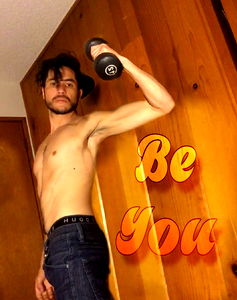 Angel Xacur is a young adult model from Los รngeles who embodies the essence of 'Be You'. In this image, he poses with confidence in front of a wooden wall. He has a muscular build, showcasing his dedication to fitness and health. His shirtless pose suggests a strong, independent personality. The background is simple and uncluttered, allowing Angel Xacur's physique to be the focal point. A black dumbbell is held in his right hand, hinting at his active lifestyle and love for physical activity.