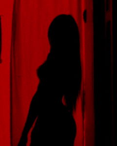 Angelica is captured mid-motion, her body silhouetted against the red backdrop. She embodies the allure of privacy and the intrigue of the unknown.