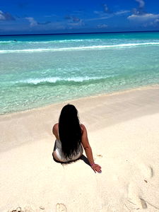 Angieello, a Florida-based OnlyFans model, enjoys the stunning ocean views while relaxing on the beach. The azure waters and white sandy beaches provide a tranquil backdrop for her photoshoot.