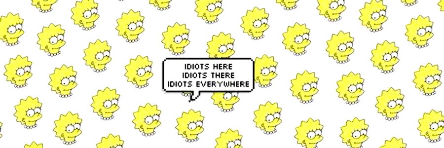 This image features an animated character in a scene with yellow tweets. The character is depicted as looking at the viewer, and there's a text that reads 'everyone here's an idiot'. The background is plain and does not provide any additional context.