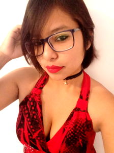 Ani Gonzรกlez is seen strutting her stuff, exuding confidence and style in a vibrant red dress. Her outfit is completed with a striking red lipstick that matches her dress perfectly, paired with sleek black glasses. The dress itself has a plunging neckline and an embellished design, adding to the overall elegance of the ensemble.