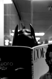 The model is showcasing a unique blend of fashion with a touch of feline elegance. Wearing a black leather cat mask paired with cat ears, the model exudes a playful yet sophisticated style.
