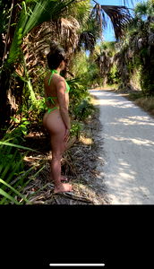 Enjoy this stunning image of a woman in a vibrant yellow bikini, posing amidst lush palm trees. The image captures her from a backside angle, emphasizing her athletic build and flawless skin. Her blonde hair cascades down her shoulders, adding to the overall allure of the scene.