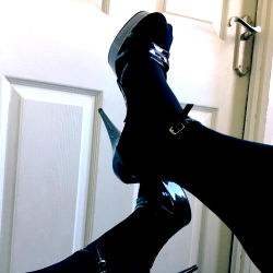 High-heeled boots and shoes are a popular fashion choice for women. In the image, a female model is showcasing her high heels against a North West backdrop.
