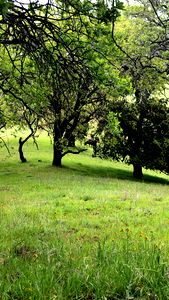 A captivating image of Anna standing in the lush green field with trees surrounding her, creating an atmosphere of tranquility and natural beauty.