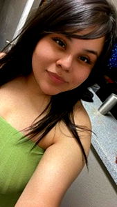 In this image, Ann is striking a pose for a photo. She's wearing a casual green tank top that contrasts nicely with her brown hair. Her smile is warm and inviting, suggesting she's in a good mood. The background is simple yet stylish, featuring a sleek black countertop that complements the overall aesthetic of the image.