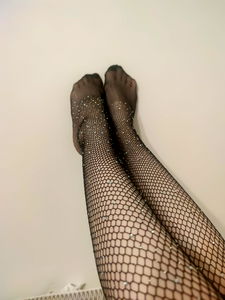 In this image, Onlyfans model Ann is showcasing her stylish stockings and fishnet tights, adding a touch of glamour to her ensemble. Her feet are elegantly adorned with black high heels, completing the sophisticated look.