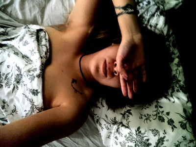 A sultry model in a candid pose with tattoos, flaunting a vibrant personality. The photo captures her youthful energy and seductive charm.