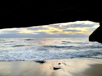 A breathtaking sunset view of the ocean, captured by Anonten at a rocky beach lookout point. The image captures a moment of tranquility and natural beauty.