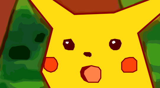 A colorful and vividly drawn image of Pikachu, the iconic yellow Pokรฉmon from the Pokรฉmon series, standing amidst lush greenery. It appears to be on high alert, possibly indicating an imminent threat or adventure.