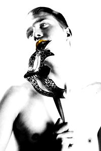 An OnlyFans model posing confidently for a promotional photo in London. The photo is black and white, showcasing the model's expressive face and muscular physique.