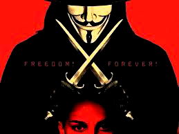 This is an image of a person wearing a Guy Fawkes mask, which is often associated with the Anonymous hacker group. The mask has a white background and features the iconic red cross on a white background. It also includes a white triangle over the eyes and a black mouth. The image has no text or additional elements. The mask appears to be made of paper or cardboard, and it is shown from the front. There are no visible texts or logos in the image.