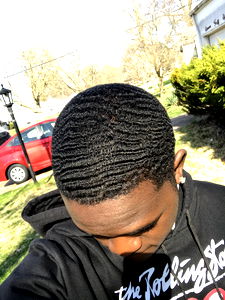 Tall male with short hair and a beard, sporting a black crop top. His style seems to be inspired by casual fashion trends. The background suggests an urban setting with a parked car visible.