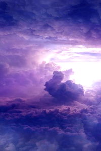 Vivid purple clouds against a backdrop of ethereal blue, evoking a sense of wonder and serenity.