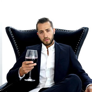 In this image, we see Antonio Suleiman, a well-dressed man who exudes an air of sophistication. He is seated comfortably in a luxurious chair, holding a glass of red wine. His dark suit and crisp white shirt complement his classic style. With a relaxed demeanor, he poses for the photo, perhaps contemplating the rich flavors of the wine in his hand.
