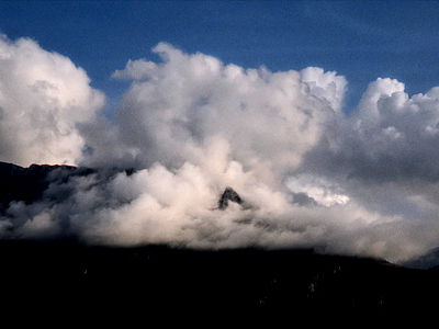 Enjoy a serene day in Kyiv, Ukraine, with this stunning image of a mountain range shrouded in cloudy skies. The overcast sky casts a dramatic backdrop to the scene, evoking a sense of tranquility and natural beauty.