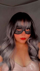 Mandy, a captivating OnlyFans model, showcases her unique style with a combination of grey and red hair. She exudes confidence in this image, wearing a striking black mask that adds an air of mystery to her persona.