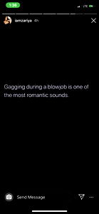This image shows a screenshot of an Instagram story by a model named CanIPutMyDickInYoJaws. The story features a message and a photo. In the text, the model is sharing a playful and provocative joke about their physical appearance. The age of the model is not visible in this image.