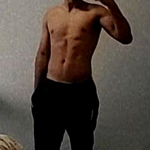 Deus Apollo is a fitness enthusiast and content creator, known for his muscular physique. In this photo, he's flexing his well-defined muscles in front of a mirror, showcasing his dedication to health and fitness. 28 years old, male.