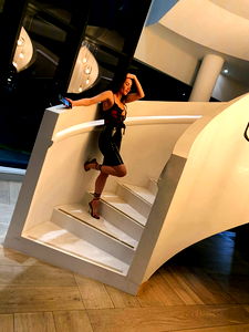Model and influencer, Queen๐ ๐ฅ, from Southampton, England, exuding confidence and style as she descends a modern staircase.