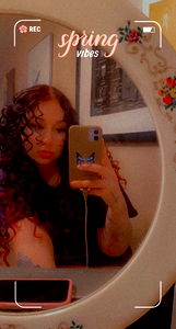 In the image, OnlyFans model Aquarius baby is captured in a mirror selfie. The model, who appears to be a young adult female with long hair and red lipstick, is taking a photo of herself using a smartphone held up to the mirror. She's dressed casually in a black t-shirt, and her pose suggests she's either posing for the camera or capturing a candid moment. The background is simple, focusing attention on Aquarius baby.