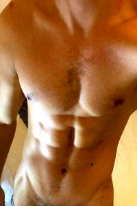 OnlyFans model Arabian Jack Boy showcases his fit physique in a mirror selfie, flaunting well-defined abs and pecs. The image suggests he is likely in his late twenties to thirties and is a bodybuilder.