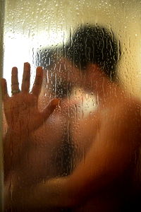 In the image, Sufyan, a fitness model, is captured in a bathroom mirror. He's shirtless and flexing his muscles, showcasing his toned physique. His hair is styled neatly, adding to his overall appearance. The background of the image reveals a modern bathroom with a sleek design.