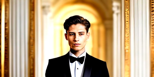 The image presents Archi Stewart, a model exuding confidence and style. He is dressed in a black tie and sunglasses, giving off a chic yet casual vibe. The background suggests an outdoor setting with lush greenery, adding to the overall aesthetic of the photograph.