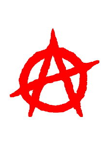 A striking red and black anarchy symbol, commonly associated with anti-establishment views and counterculture movements. This icon is frequently used in various forms of media, including fashion, music, and street art.