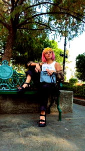 A striking image of OnlyFans model Danae P, capturing a moment on a vibrant city street. She is standing outdoors, her unique and eye-catching style accentuated by the neon colors and urban backdrop. Danae's pink hair and bold accessories draw attention, hinting at her eclectic and adventurous personality. This model photo showcases her creativity and flair for fashion, making it an appealing piece of content for both OnlyFans followers and social media platforms.