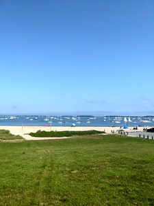 A tranquil beach scene with sailboats in the background, clear skies and a light sandy shore. It's a picturesque day for sailing! 🛥️ #beach #sailing #summervibes