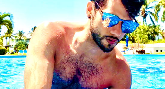 A sexy adult male model, Arid, is showcasing his physique and confidence in this image. The photo is taken with a focus on the model's chest area, highlighting his well-defined muscles. He's wearing a blue swimsuit that contrasts beautifully with his skin tone. His pose suggests he's comfortable in front of the camera. OnlyFans models like Arid are known for their unique styles and engaging content.