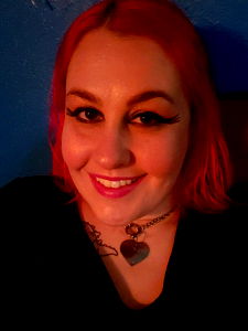 In the image, you can see Ariel_foxx, a model from Texas, in her glamorous style. She is seen wearing red hair and makeup, which adds to her vibrant and stylish appearance. She is also holding a glass of wine, suggesting that she might be enjoying a relaxing moment at home.