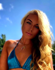 Blonde beauty Ari radiates summer vibes with her blue bikini and playful pose. Her light brown hair cascades down, complementing her youthful energy. She embodies the essence of a sunny day with her vibrant bikini and relaxed demeanor. Capture this moment before it fades away!