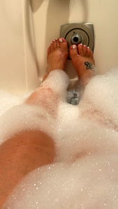 Arista, a renowned OnlyFans model from Earth, shares her tranquil moment of indulgence in a bubble bath. She's fully immersed in the experience, with frothy bubbles surrounding her feet. Her relaxed posture and the soothing ambiance create an image that captures the essence of self-care and indulgence.