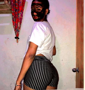 Patricia Ortega is a model from Cartagena, Colombia. Known for her unique style and confidence, she is a popular figure on OnlyFans. She has captured the attention of many with her bold fashion choices and playful attitude. In this image, she is seen sporting a face mask and wearing a white t-shirt paired with black and white striped shorts. Her pose in front of the mirror suggests a moment of self-expression and body positivity.
