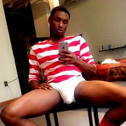 A provocative black and white photo of Armani Flexxx, a OnlyFans model from Milwaukee, Wisconsin. He's captured in the midst of a candid moment, wearing an oversized red and white striped shirt and a playful expression that invites viewers to appreciate his physique. The image conveys a sense of intimacy, making it perfect for OnlyFans content.