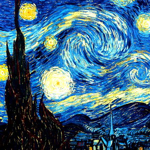 This is a beautiful and vivid reproduction of Vincent van Gogh's iconic painting, The Starry Night. The painting captures the essence of the post-impressionist style with its swirling patterns, dynamic brushstrokes, and bright colors. The scene features a night sky filled with stars and crescents, along with cypress trees in the foreground. This piece is sure to bring the classic art aesthetic into any room. Perfect for both modern and traditional art lovers, it's a striking decorative item.