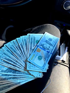 A young man from Cleveland, known for his rap music and unique style, is seen inside a car. His relaxed demeanor suggests a moment of respite before or after a performance. The image captures the essence of the urban hip-hop culture.
