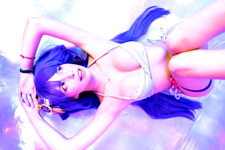 This is an image of a young woman, around 24 years old, with a strong presence and striking beauty. She is a model, as evidenced by her confident pose and the professional quality of the photo. Her long hair cascades down her back, adding an element of elegance and femininity to the image. She is wearing lingerie, specifically, a brassiere and panties set that accentuates her toned abdomen and slim frame. The lingerie top is particularly detailed, hinting at a high-fashion aesthetic. This image seems to be from a photoshoot, making the woman's job as a model more evident. The focus on her navel and stomach suggests that the aim of the shoot might be to showcase lingerie or to highlight body positivity. Her face is very expressive and captivating, drawing the viewer's attention. She could be a fashion model, an art model, or even a gravure idol, given the expressive and artistic nature of the image. Despite the daring nature of her outfit, her fashion accessories add a touch of class to the overall image. This woman exudes a sense of power and confidence, making this image not only beautiful but also inspiring.