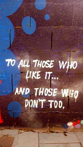 A photograph of a colorful graffiti quote, featuring the tagline 'and those who like it... and those who don't'. Valencia is famous for its vibrant street art.