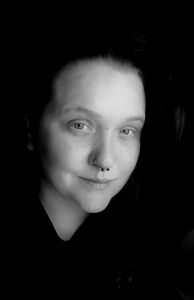 This black and white photograph captures the powerful intensity of Ashe Grey, an OnlyFans model from EC, USA. The image features a woman with a confident gaze, set against a dramatic background that accentuates her features. Her expression is serious yet engaging, making for a captivating portrait.