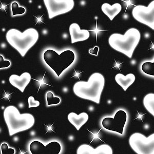 A captivating black and white graphic design featuring the pattern of hearts, set against a glittery star-filled backdrop. The design exudes a sense of whimsy and romance, with the contrast between the dark background and the light hearts creating a striking visual effect.