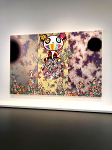 Fans of Ash will be drawn to this vibrant piece. The artist has skillfully used bold colors and abstract shapes to create a captivating scene. A large black circular object dominates the space, with intricate details that invite exploration.