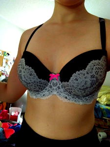 An image of an OnlyFans model in a corset and lace bra. This is an advertisement for the Canadian brand featuring Sphinx as their model. The advertisement is tastefully done with the model wearing the underwear and looking directly at the camera.