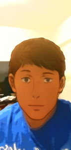 Anime-style illustration of a young male with short hair, presented in portrait orientation. His eyes are closed, and he appears to be standing with one hand slightly raised, suggesting a moment of pause or reflection. The character's face is serene and expressive, with a neutral background that focuses attention on the figure.