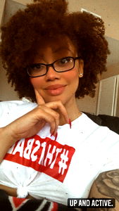 A young woman wearing glasses and a white t-shirt. She has short hair and is making a pose with her hand on her chin. The image appears to be taken indoors with a light background.