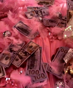 Lilith's extravagant 100th birthday party, with a shower of money, pink feathers, and glitter. #birthday #celebrate #party