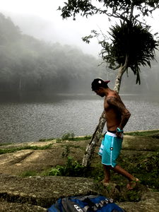 This is a candid and private photo of OnlyFans model Alysson Soares, capturing him in his bedroom. He is shirtless and wearing shorts, with the room's interior visible in the background.